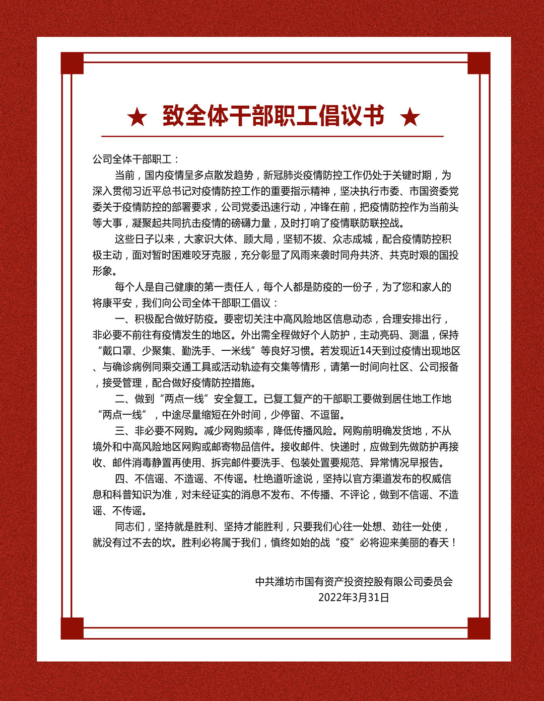 根據(jù)《濰坊市國(guó)有資產(chǎn)投資控股有限公司2022年公開(kāi)招聘公告》,現(xiàn)將進(jìn)入面試人員名單進(jìn)行公布(附件)。面試時(shí)間、地點(diǎn)等通過(guò)電話或短信進(jìn)行通知。?????????????????&n